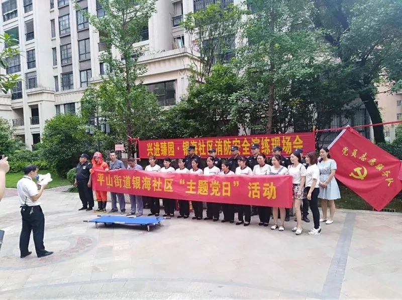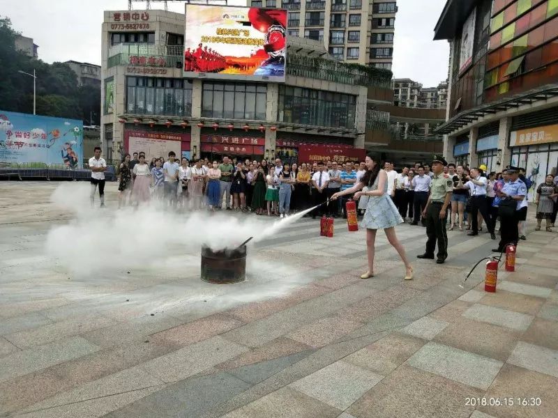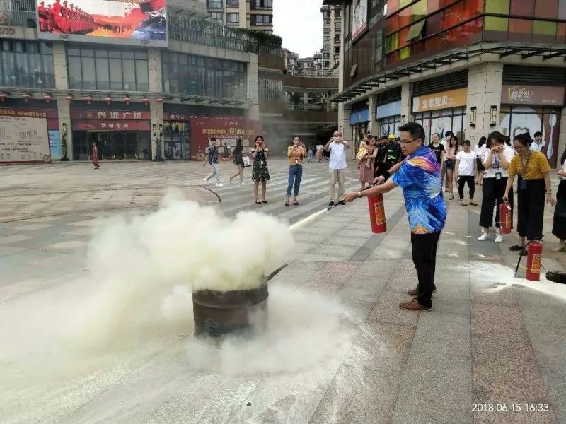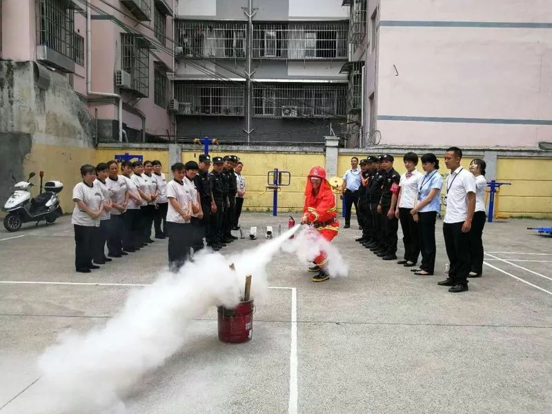 在消防员的指挥下,开展消防宁静演练,演练内容包括了疏散逃生、油盆灭火、灭火器等消防器材的使用。