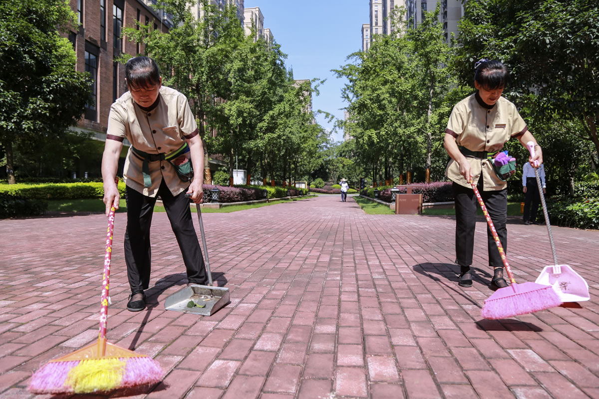 z6com人生就是博各小区保洁人员在烈日下完成事情