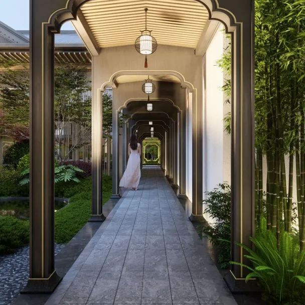溯源正统宋风,以宋代李诫所著《营造程序》为借鉴蓝本,借宋式建筑美学之神韵,以经典传承经典。屋角飞檐、砖瓦有灵、装饰雕纹等,皆现宋式大方灵韵。勾勒宋代山水宫苑花样,雕琢九重礼序,封藏千年山水观,与榕湖共赏。