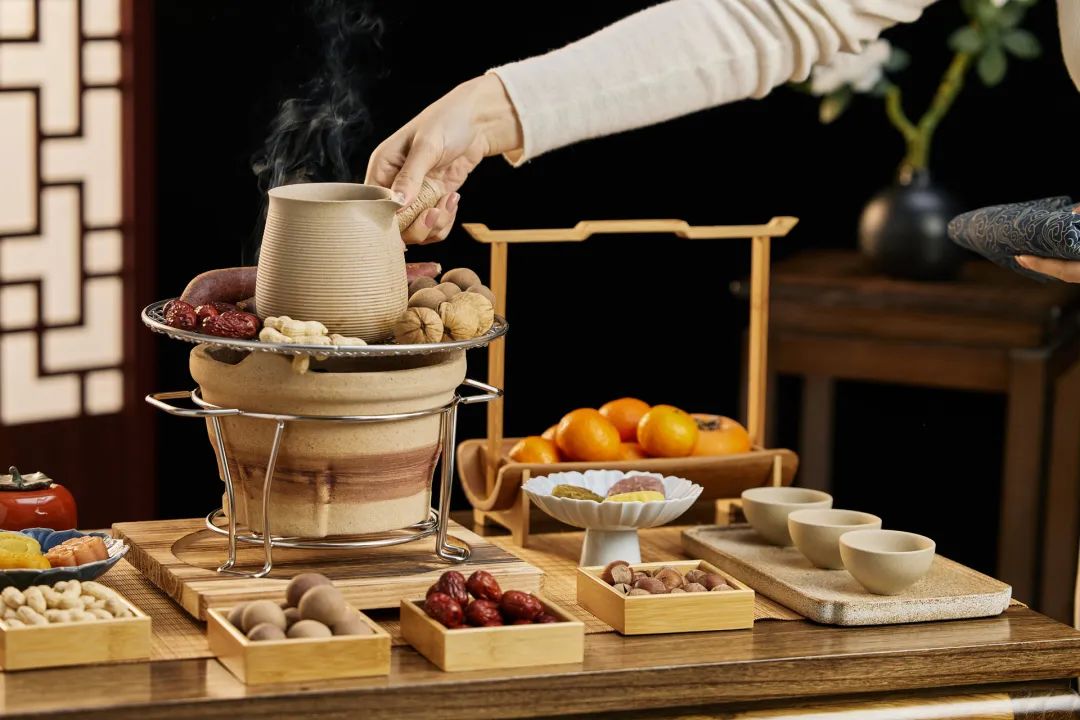 生一钵炉火,煮一壶清茶,和家人挚友围坐在小院,借着煮茶的炭火,再烤些柿子、红薯、花生。闲话家常,有如童年的影象,割舍不去。