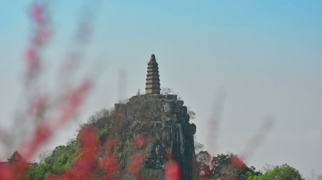 穿山枕水而眠,塔山倒影,桃树成林,目之所及,皆是当年徐霞客赞叹的绝景。
